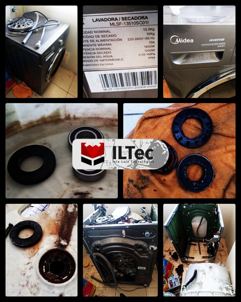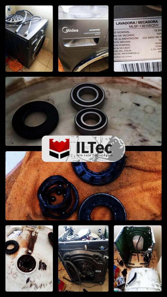 Desde Parque Lauquen nos contactan para reparar una Lavadora/Secadora, kit de rodamientos y retén completamente destrozado, en ésta ocasión solo fue el recambio de las piezas, aunque igualmente el procedimiento de desarme y re-arme es el intenso, siempre se aprovecha para hacer limpieza, no fue ésta la ocasión.