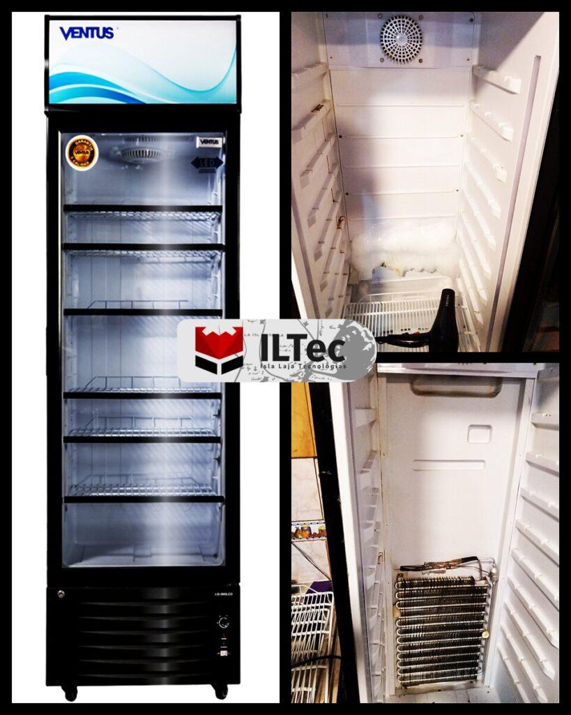 Desde Villa España me contactan por un Visicooler que no enfriaba correctamente, al llegar me encuentro con una gruesa capa de hielo, resulta que el método de descongelamiento era solo tiempo con motor apagado, a veces puede derivar en exceso de hielo si no se calibra correctamente, y bueno de acuerdo a la temporada para evitar ese tipo de problemas, aunque la solución es simple, descongelar nada mas, y además se configuró el controlador correctamente.