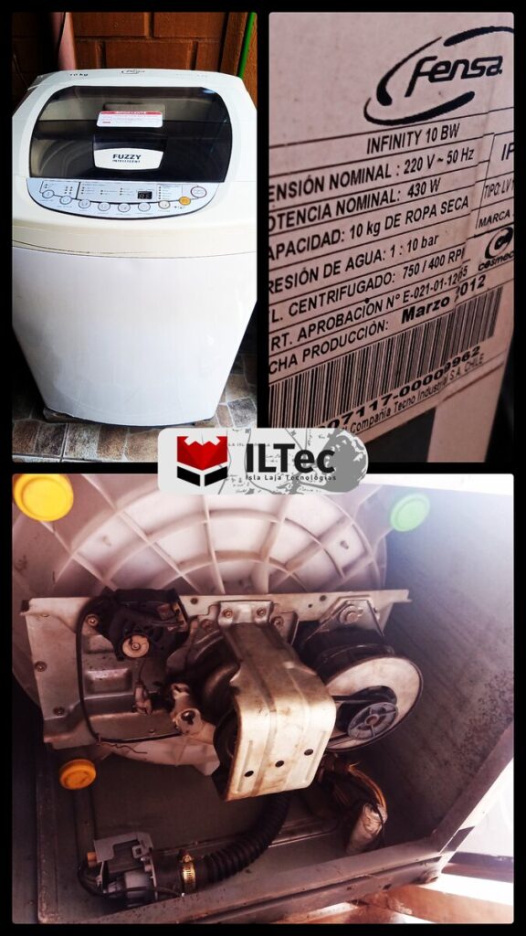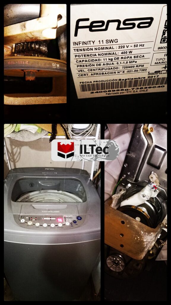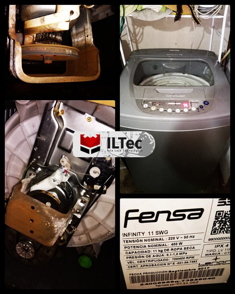 Desde Villa El Avellano nos contactan por una Lavadora/Secadora con problemas de giro, después de revisarla con detalle corroboré que era un defecto de fábrica que tienen ciertos modelos, las fijaciones de los contrapesos de la tina fallan y bloquean la polea del eje del canasto, no hay una formalidad para reparar eso, pero con ingenio la eh reparado varias veces, quedó impecable.