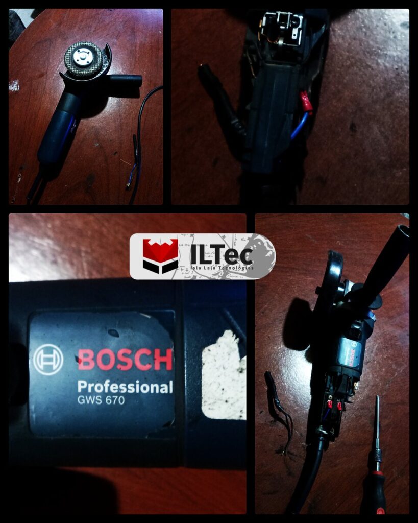 A mi Taller llega éste Esmeril que hizo corto circuito, al revisarlo, solo se encontró un cable molido, al igual que todos los electrodomésticos manuales con un cordón, si no se almacena con cuidado, tarde o temprano los cables en el interior del cordón pierden su aislamiento, haciendo que las líneas se toquen, y causando cortos circuitos, y quien sabe cosas peores, ahora solo fue un reparación menor de cordón.