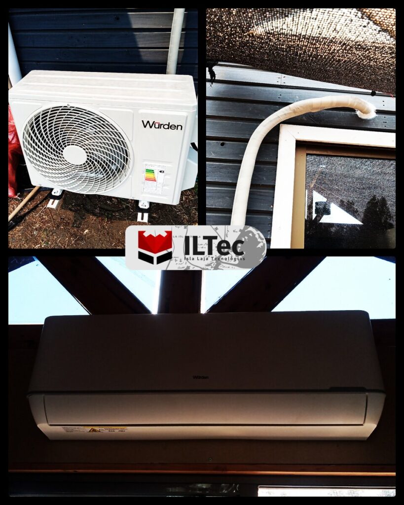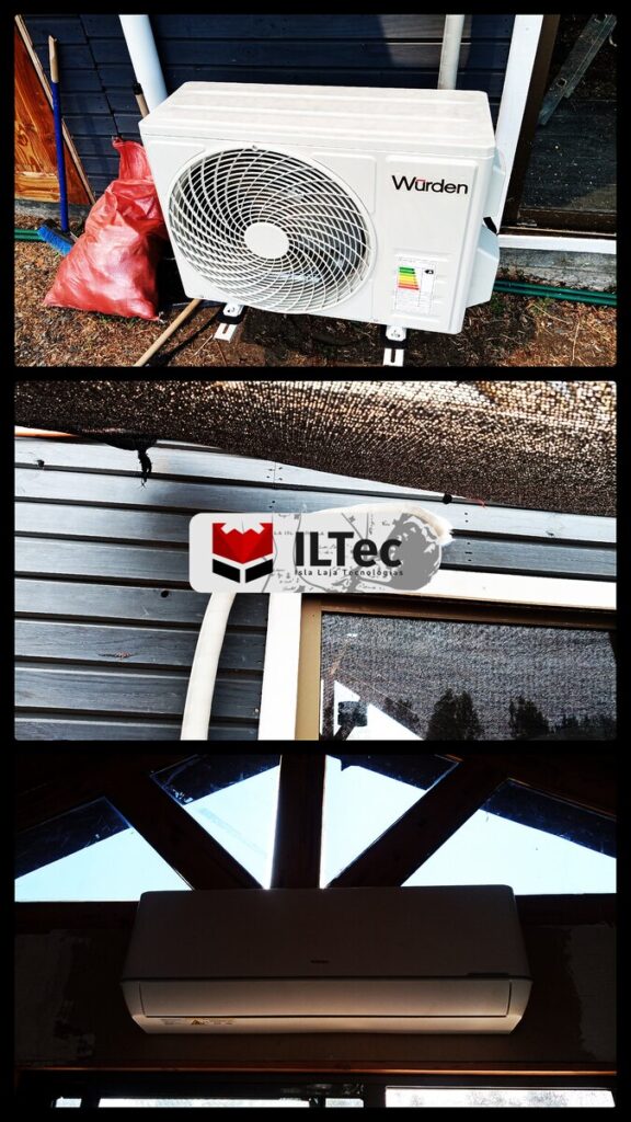 Desde Sector Saltos del Laja, nos contratan para instalar un equipo de Aire Acondicionado, ésto fue en plena época de incendios, días complejos, la casa era tabiqueria de material ligero asi que la instalación fue medianamente expedita.