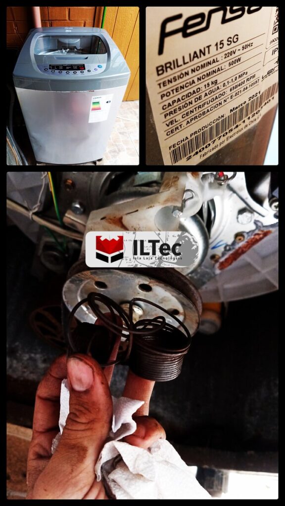 Desde Pahillihue nos contactan por una Lavadora de carga superior con problemas en el centrifugado, después de una revisión se realiza una tensión en la correa, problemas simples que afectan el desempeño de la maquina.